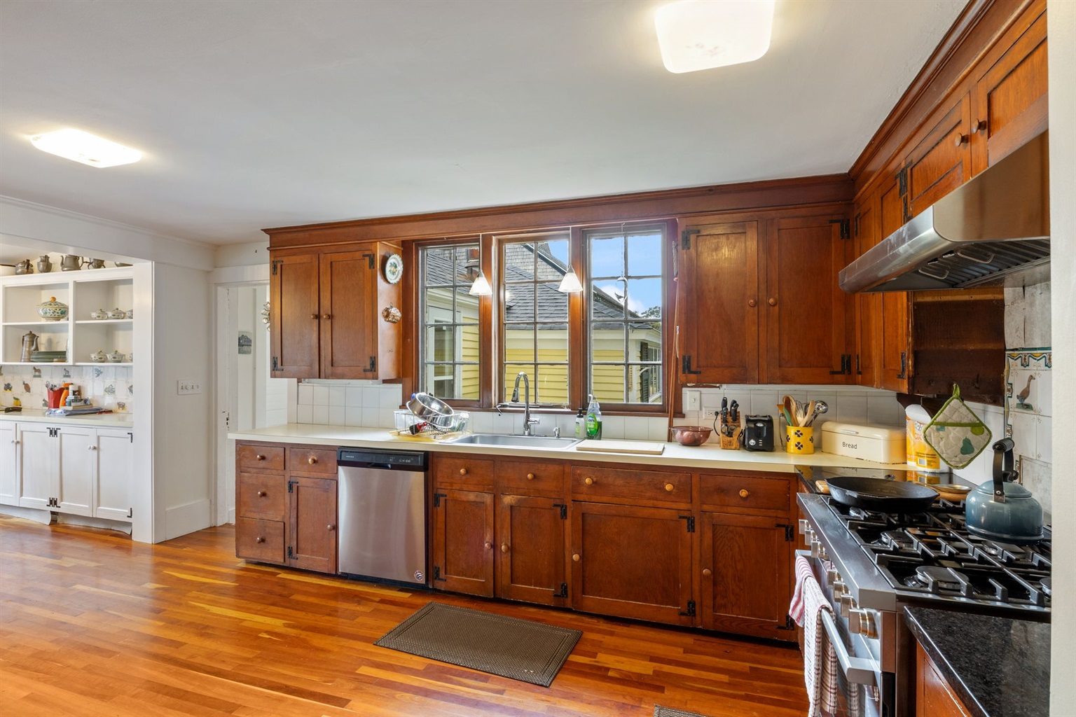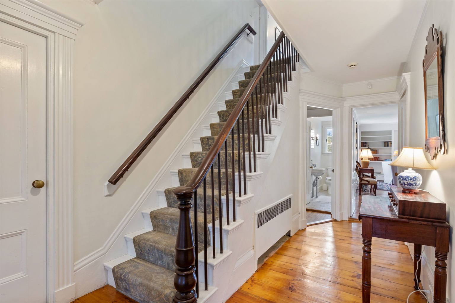 Blend of vintage character & modern comfort — elegant wood flooring, period moldings, built‑ins, sunny windows