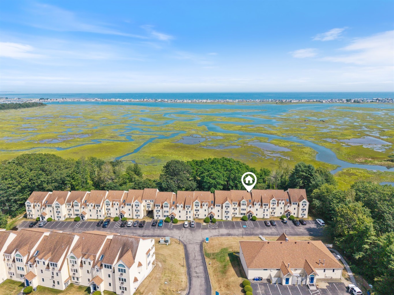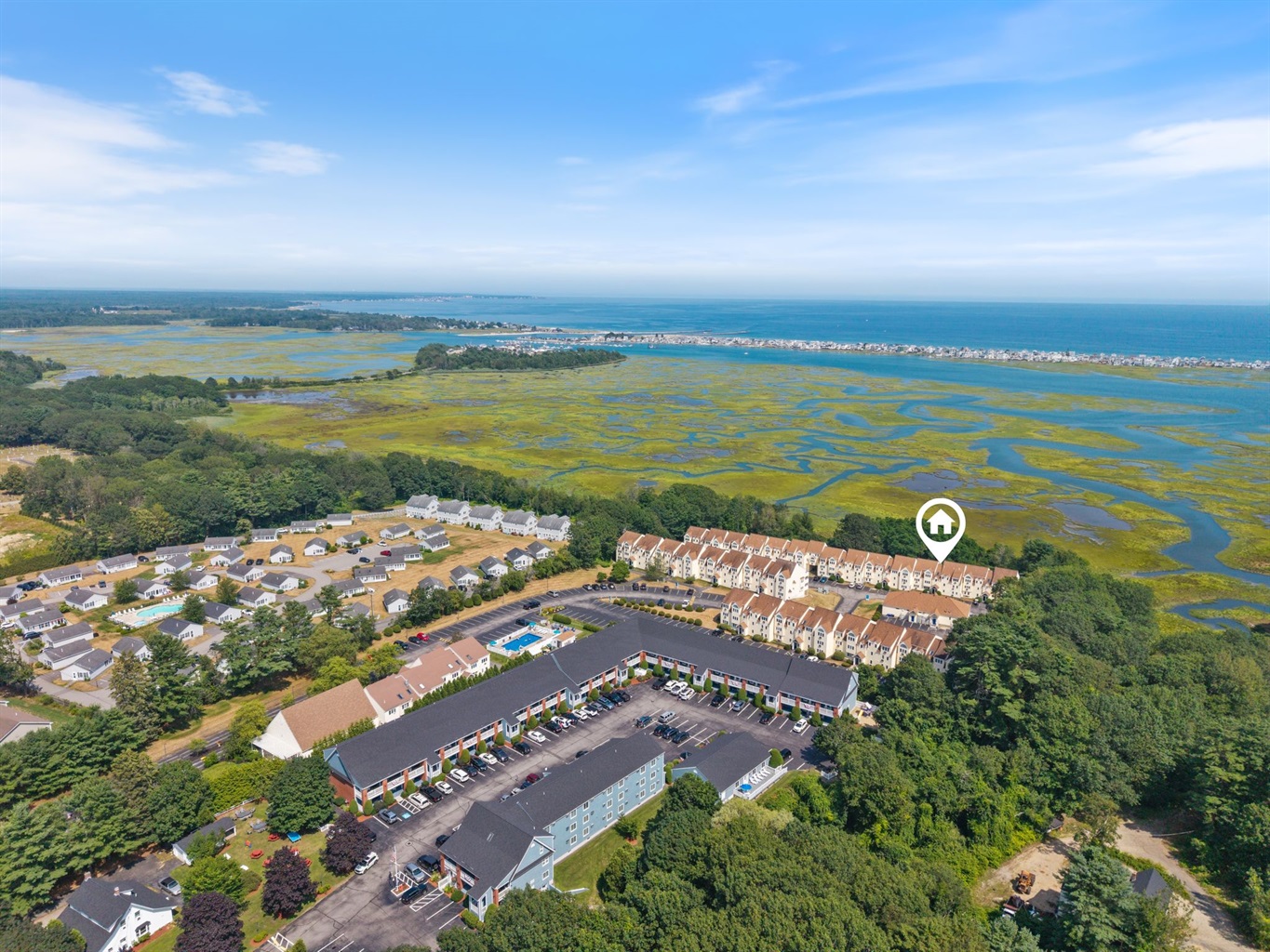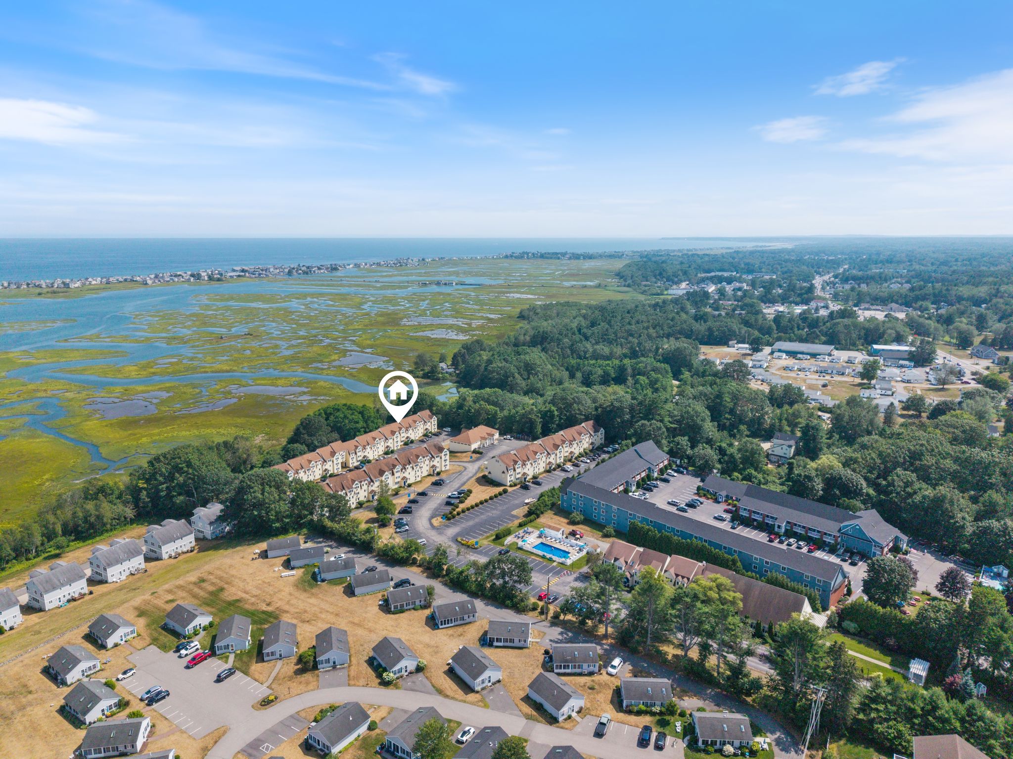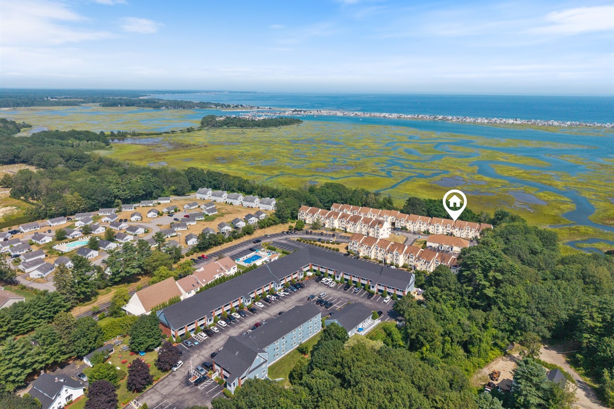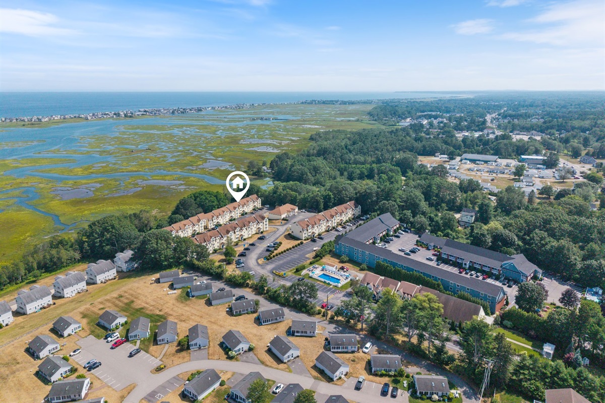 2 Bedrooms • 2 Bathrooms 2 Baths • Sleeps 3-6Pristine two bedroom, 2 full bath, renovated 1,260 square foot unit at sought after Village by the Sea in Wells, Maine. Located in the Chickadee Building bordering the Rachel Carson Wildlife Preserve this convenient first level unit offers views of the salt marsh and the ocean beyond. The residence features a fully equipped spacious kitchen that connects to the dining and living areas providing space for relaxation and meals with family and friends. The primary bedroom suite, with cozy electric fireplace, opens out to a private patio for enjoying the coastal air and the natural beauty of the tidal salt marsh. There is a spacious guest bedroom and a full guest bath that will delight your visitors. In-unit full size washer and dryer makes laundry simple. Village by the Sea provides many onsite amenities including an indoor heated pool, hot tub, fitness center, game room, seasonal outdoor pool, gas grills, Bocce ball court and basketball court. Village by the Sea unit owners can take full advantage of the great location close to various fine restaurants and shops in Wells and is between the popular towns of Ogunquit and Kennebunkport and is within a short distance of Drakes Island, Wells Harbor, and miles of sandy Wells Beaches.